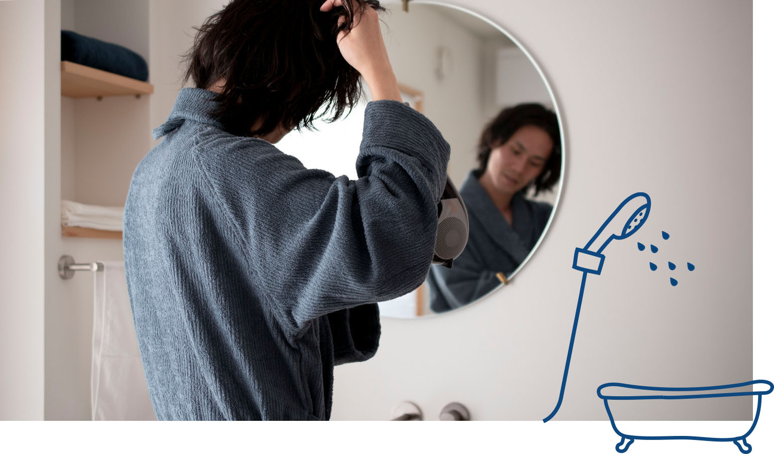 バスローブの正しい使い方は、「湯上り後すぐ着る」。お風呂上りは温まった身体から熱を放出させるため、たくさん汗をかきます。すぐにパジャマを着ると汗を吸収し、パジャマが 湿ってしまい、着続けると湯冷めしてしまうのです。