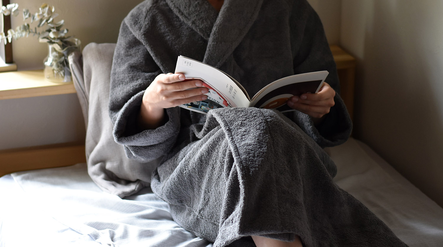 おすすめしたい入浴後は汗と共に肌に必要な水分まで蒸発し乾燥が進みます。体温が落ち着くまでの間、ボディクリームを塗った肌をバスローブで覆ってあげると、しっかり保湿され、肌を鎮めることができます。