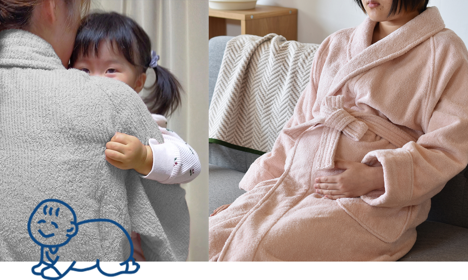 ママとパパの時短に!お風呂上りも赤ちゃんから目が離せず、自分のことは後回し…。なんて時、バスローブが便利です。サッと羽織るだけで全身の水滴を吸収するので、赤ちゃんを待たせず、パパやママも風邪を引くことなくお着換え作業ができます。