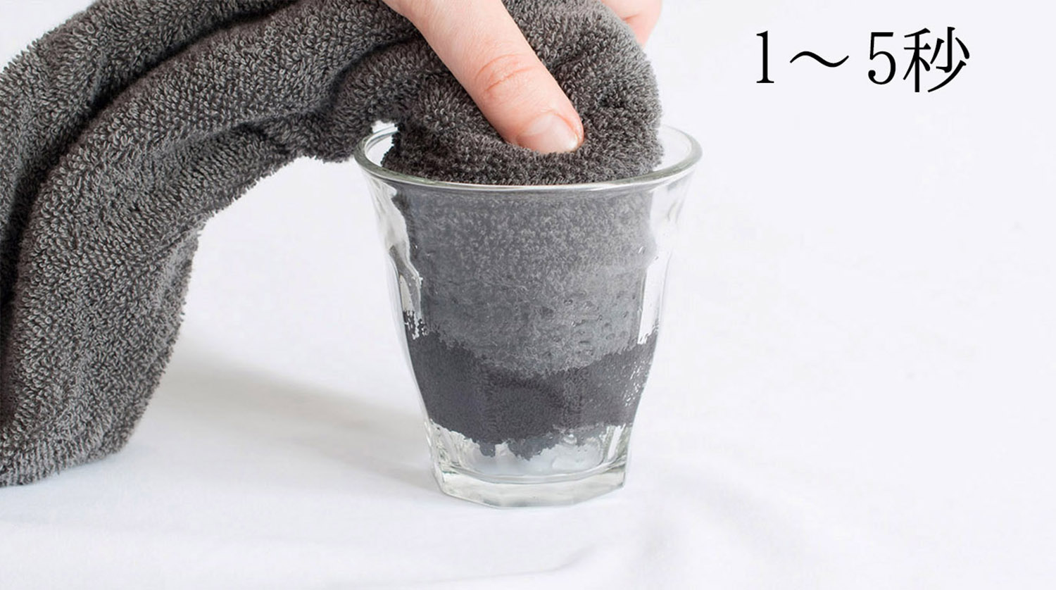 タオル片を水に当てると5秒以内に吸い取る、