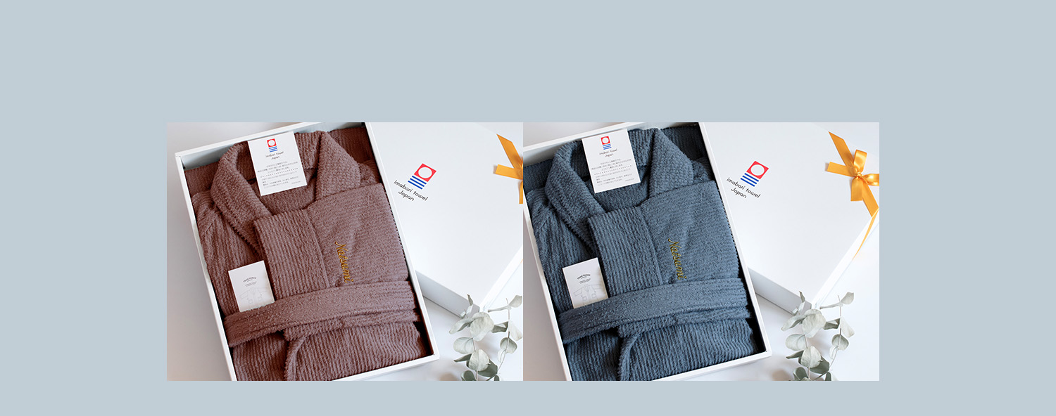 カップルでお揃いのものを着られるのもいいです。(ストライプバスローブお名前刺繍ギフト)