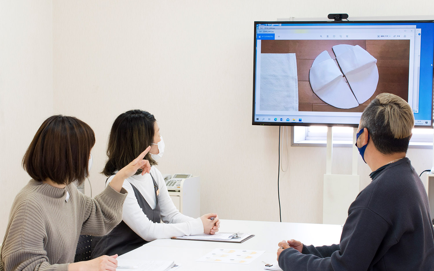 あれ?と思われた方も多いはず。何だか見た目が大きく変わってしまった印象ですよね。なぜこんなにも変化していったのでしょうか?そこには一体どんな想いが込められているのでしょうか?主に商品開発に携わった3人の打ち合わせの様子をのぞき見しながら、その謎を探っていきたいと思います。