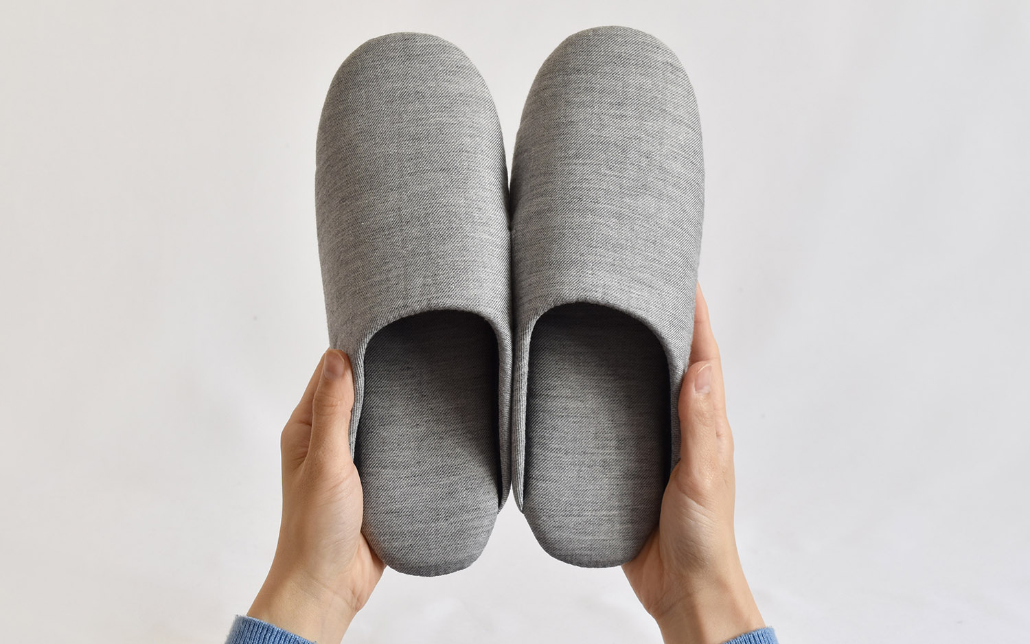 でも、一点気になることがあって…。このカタチ、すごく履きにくくない?履き心地が良くないと日常使いはしにくいかも。やっぱりスリッパはスリッパらしい形状が一番履きやすいんじゃないかな。 |