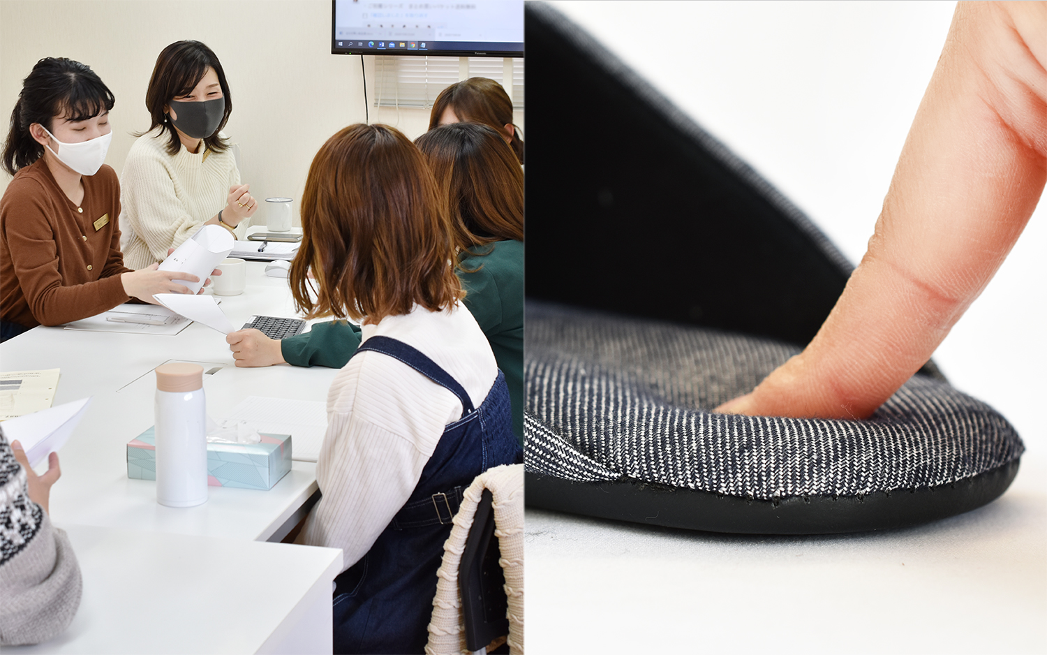 履き心地の良さにもかなりこだわったので、いい反応でホッとしました。3層構造のクッション材のふかふかさは、誰が履いても本当に驚くかと思います。 |