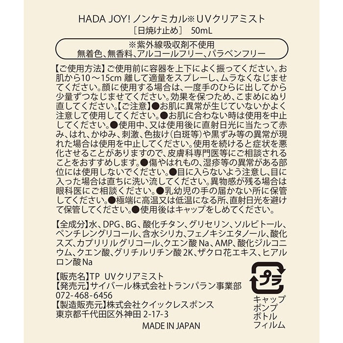他の画像を見る ノンケミ処方で、妥協しないUVスプレー 日焼け止め スプレー HADA JOY ハダジョイ 無料ラッピング可 さらさら ノンケミカル UV SPF50+ PA++++ 50g 送料無料 オリジナル メーカー希望小売価格 ¥ 1,980 ¥ 1,980 税込 詳細を見る お気に入りに登録する