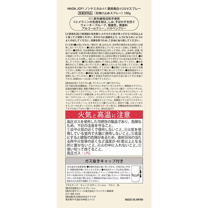 他の画像を見る ノンケミ処方で、妥協しないUVスプレー 日焼け止め スプレー HADA JOY ハダジョイ 3本セット 無料ラッピング可 さらさら ノンケミカル UV SPF50+ PA++++ 130g 送料無料 オリジナル メーカー希望小売価格 ¥ 7,590 ¥ 7,210 税込 詳細を見る お気に入りに登録する